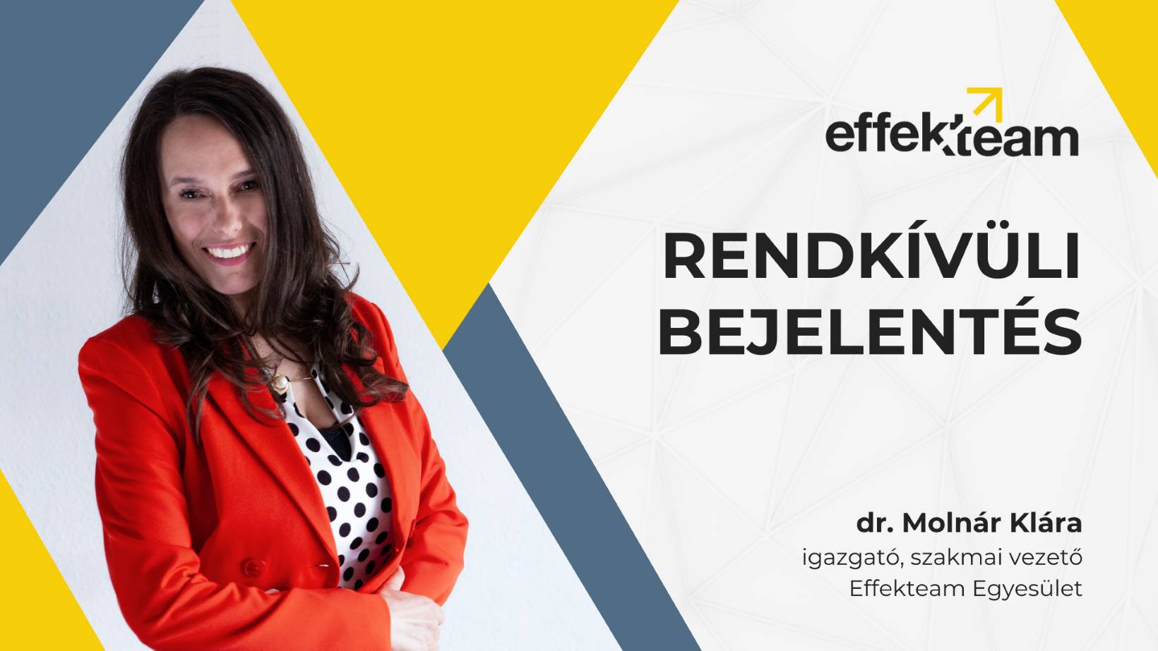 Közel két évtizednyi szakmai munka, több száz vállalati és civil együttműködés, rengeteg sikeres CSR és ESG kezdeményezés után egyesületünk egy fontos állomáshoz érkezett. Az Effekteam vezető testületeinek egyetértésével, csapatunk komoly döntést hozott a szervezet működését illetően. A részletekről szakmai vezetőnk, dr. Molnár Klára ad hivatalos tájékoztatást az alábbi videóban.